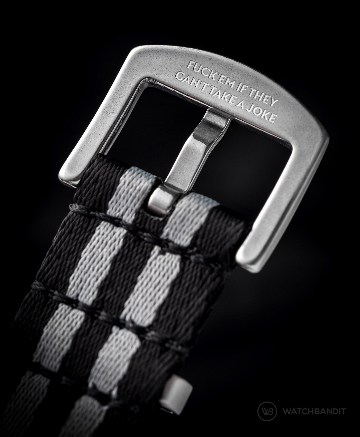 Die limitierten #wristporn Premium-Trilogie wurde zut Feier von 3 Millionen Hashtags auf Instagram zusammen mit der bekannten Uhren-Medienplattform WRISTPORN ™ mit WatchBandit entworfen. Diese limitierte Version von hochwertigen Premium-Nylon-Bändern hat das WRISTPORN ™ -Logo auf den gebürsteten 316L-Edelstahlelementen eingelasert. Auf der Innenseite der Dornschließe ist das berühmte Sprichwort “fuck ’em if they can’t take a joke” versteckt, ein allgemeiner Slogan, der so viel wie “wen interessiert das, wenn sie keinen Spaß verstehen?” bedeutet.