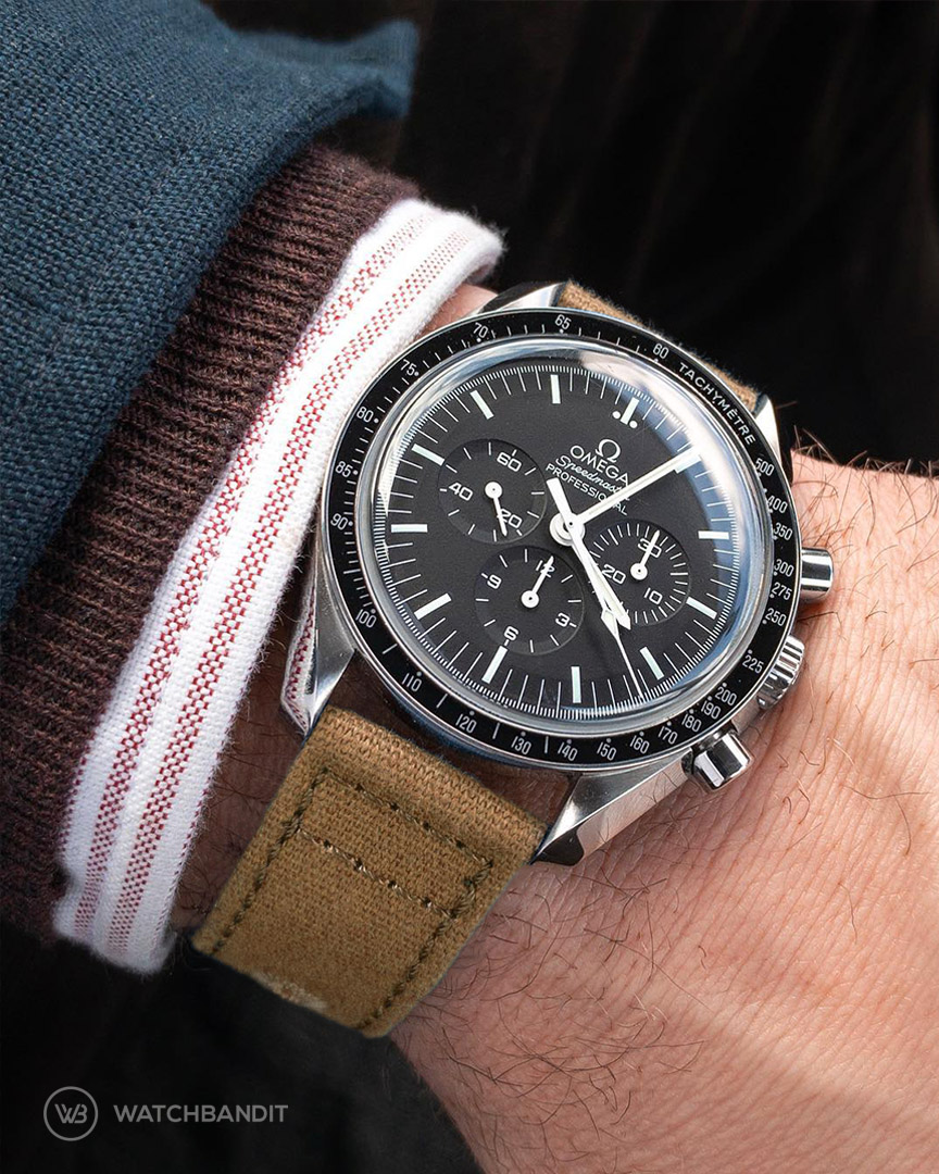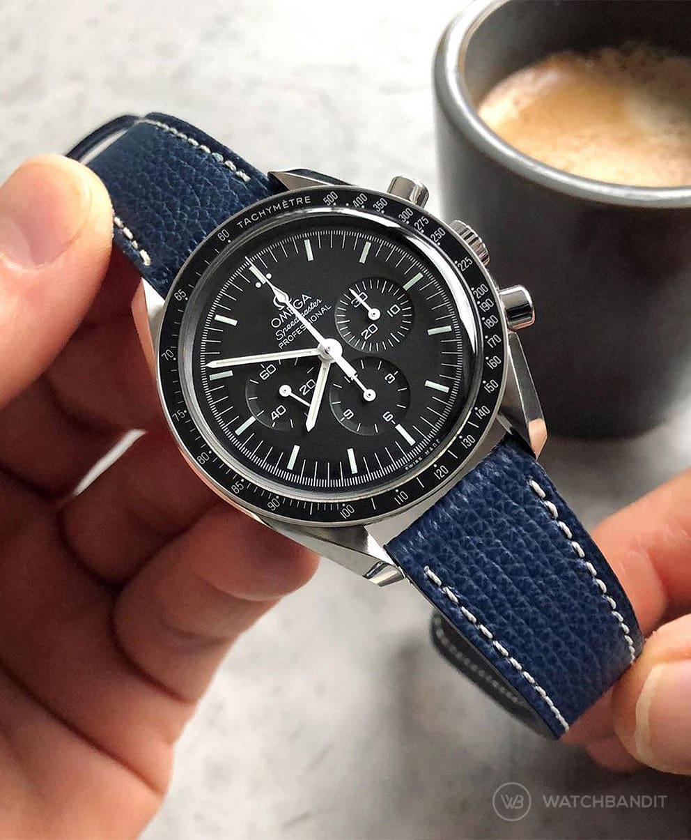 Die “Moonwatch” ist als ein Chronograph für den Weltraum gedacht, sie kann aber auch sehr elegant sein. Du kannst deine Omega mit einem WB Original Vintage-Lederarmband leicht in eine Dresswatch verwandeln und es farblich mit deinen Schuhen und Gürtel abstimmen. Der Look ist nicht zu sportlich und auch nicht zu elegant – es ist einfach perfekt um von Montag bis Freitag zum Anzug getragen zu werden, bevor sie zurück an einem Nylon oder Canvas auf ein Abendteuer am Wochenende geht.
