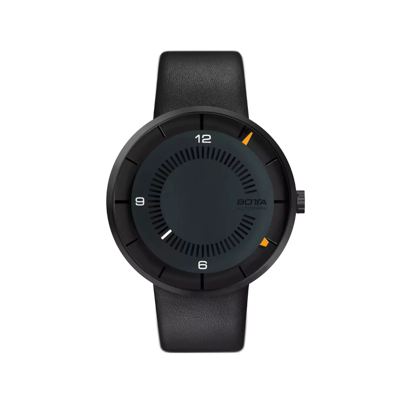 Dann, in einer kurzen Bewegungspause, erscheint das BOTTA-Logo aus der Dunkelheit, bevor der Zyklus von neuem beginnt. Diese unerwartete Choreografie erinnert an eine digitale Anzeige, ist jedoch rein analog und wird von einem fein abgestimmten Schweizer Automatikwerk angetrieben. Trotz ihres unkonventionellen Designs ist die CLAVIUS überraschend gut ablesbar und bietet eine fesselnde, meditative Interaktion mit der Zeit. Sie weckt Neugier, regt zum Gespräch an und spiegelt die Persönlichkeit ihres Trägers wider: jemanden, der Individualität, Innovation und die Schönheit durchdachter Technik schätzt. Gefertigt aus hochwertigen Materialien mit verschraubten Gehäuseteilen für eine einfache Wartung, ist die CLAVIUS nicht nur ein Designwunder, sondern auch ein langlebiges, nachhaltiges und zeitloses Statement-Stück.