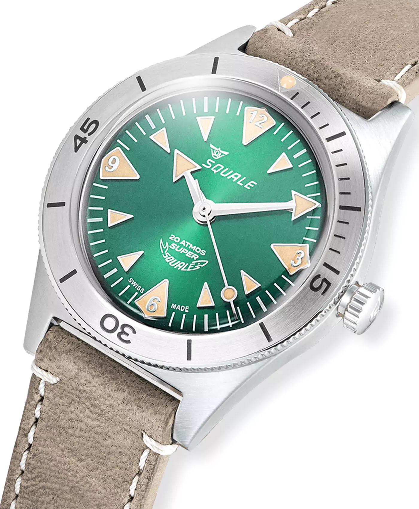 Die große Schweizer Tradition der Präzisionsuhrmacherei, verbunden mit der Liebe zum Meer und zum Tauchen, waren die beiden Faktoren, die C. Von Büren dazu veranlassten, sich ausschließlich auf den Bau professioneller Taucheruhren aus den frühen 50er Jahren zu konzentrieren. Anfänglich erschien die Marke “Squale” auf den Koffern von Schweizer Uhren verschiedener Marken, als Zeichen der guten Herstellung und eines Qualitätszeichens. In den 1960er Jahren begann Von Büren Uhren zu produzieren, die auch die Squale-Markierung auf ihren Zifferblättern aufwiesen. Damit begann die Institutions- und Handelsgeschichte der Marke. Die ersten sportlichen Erfolge, wie der 1968 in Kuba gewonnene Welttauchtitel, waren mit den Namen von Produkten verbunden, die so legendär waren wie die Medium Master 50 atm. In den 70er Jahren entstand die erste “1000 Meter” Uhr mit Glas auf flexibler Montage und aufklappbarer Lünette, die sich in beide Richtungen drehen ließ. Squale produzierte weitherin für andere Marken und begann, das Elitekorps einer großen Anzahl von Streitkräften zu beliefern, einschließlich der Fallschirmspringer der italienischen Folgore-Brigade und der Tauchkompanie der italienischen Marine. All dies hat Squale zu einem Synonym für Qualität und international zur Referenzmarke für Taucheruhren gemacht, ein Status, den Squale seit mehreren Jahrzehnten genießt.