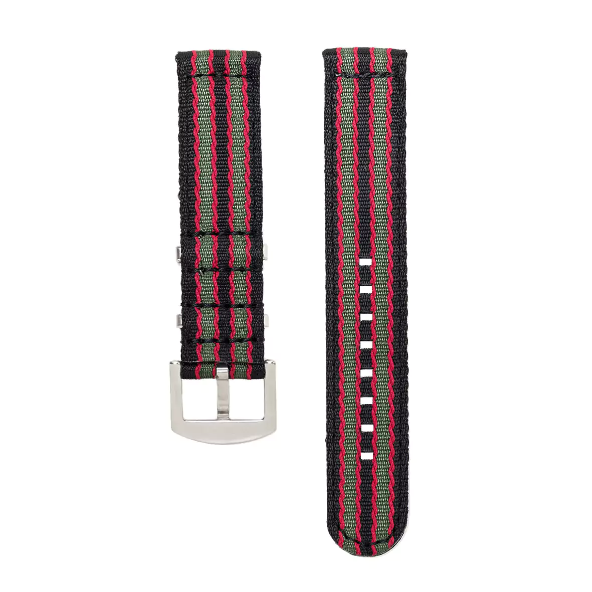Zweiteilige Nylon Armbänder sind für all diejenigen, denen die einteiligen Nylons zu wuchtig am Handgelenk erscheinen. Unsere WatchBandit Original zweiteiligen Nylon’s sind aus qualitativ hochwertigem, flachen und belastbaren Nylon hergestellt, ohne dabei unerschwinglich zu sein. In Berlin entworfen und zusammen mit den besten Uhrenfabriken gefertigt, bringen wir unsere langjährige Erfahrung auf den Tisch, um Premium-Uhrenbänder zu fairen Preisen herzustellen. Mit den neuesten Trends und höchsten Standards produzieren wir die Bänder, nach denen Ihr schon immer gesucht habt. Nachdem wir eine Kategorie Armbänder für eine bestimmte Zeit verkauft haben, sammeln wir die Erfahrungen, die ihr mit den Bändern gemacht habt, um die Produkte am Markt zu verbessern und das perfekte Armband für Euch herzustellen. Da es auf dem Markt in den meisten Fällen nichts Vergleichbares gibt, passen wir die Produkte an die Bedürfnisse unserer modernen Uhrenliebhaber an. Die Armbänder von WatchBandit Original sind die Essenz eines jahrelangen Prozesses und wurden mit Eurer Hilfe entwickelt. Danke, dass Ihr uns geholfen habt, hochwertige Armbänder erschwinglich zu machen!