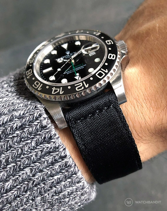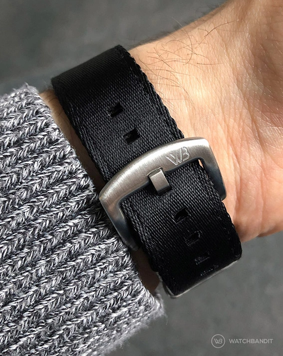 Zweiteilige Nylon Armbänder sind für all diejenigen, denen die einteiligen Nylons zu wuchtig am Handgelenk erscheinen. Unsere WatchBandit Original zweiteiligen Nylons sind aus qualitativ hochwertigem und belastbaren Nylon hergestellt, ohne dabei unerschwinglich zu sein. Normale Nylon Uhrenarmbänder lassen die Uhr (ca. 2,8 mm) höher am Handgelenk sitzen. Deshalb haben wir unsere WB Original zweiteilige Nylon Uhrenarmbänder entworfen.