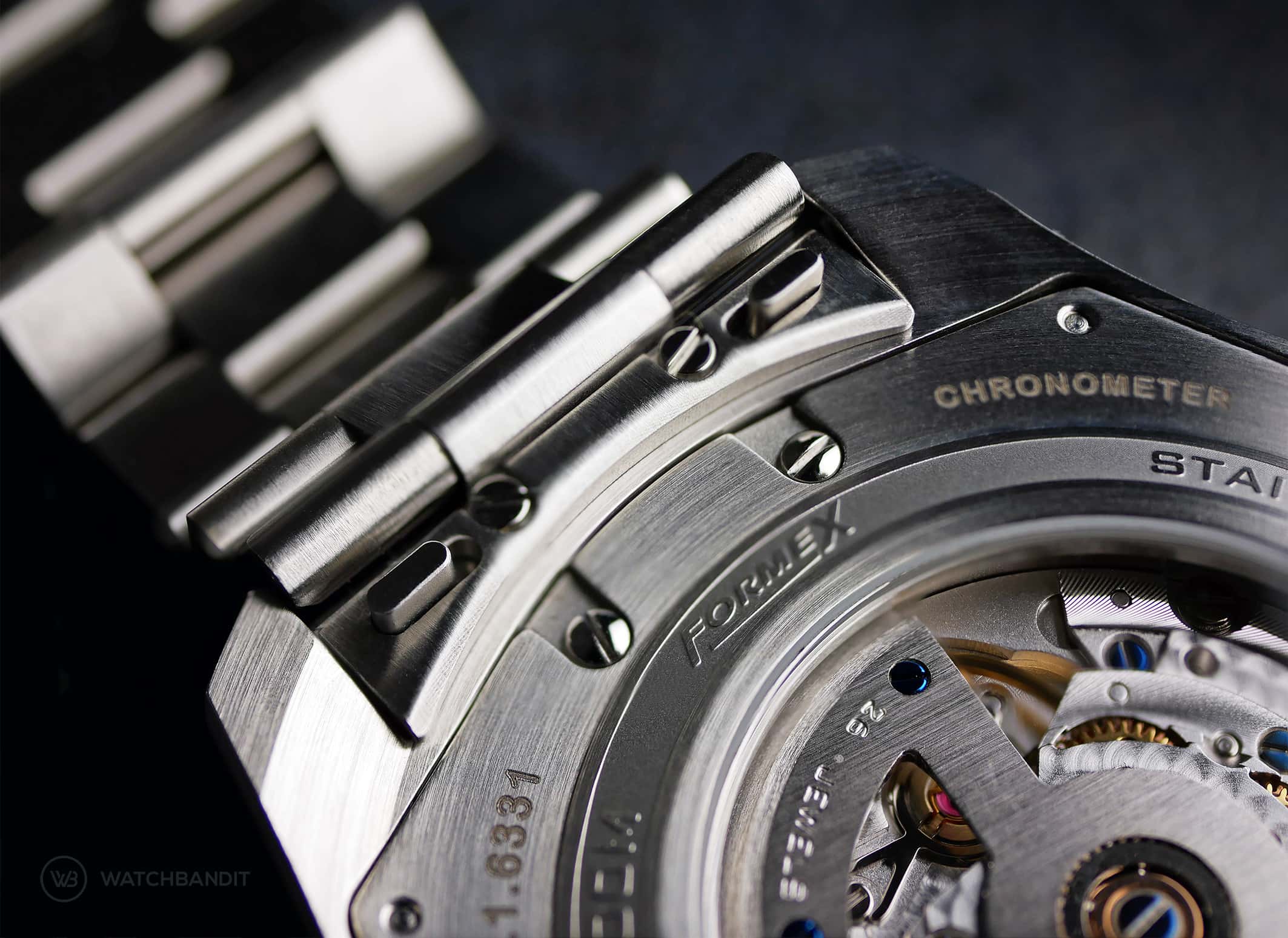 Case back of the Formex Essence Chronometer with its COSC-certified Sellita SW200 movement