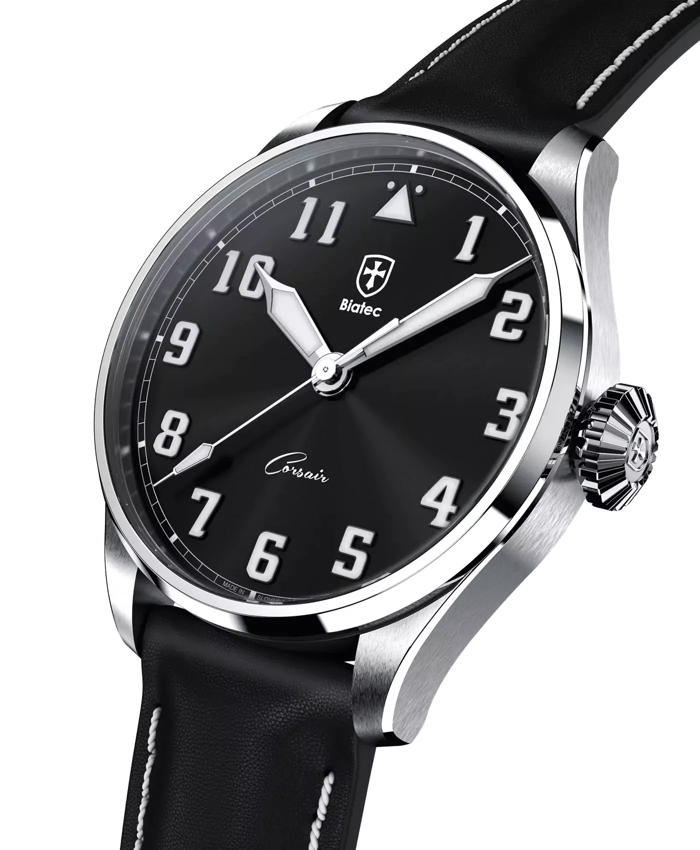 Following the remarkable success of the previous CS models, Biatec decided to refresh the Corsair CS F collection. This edition now brings back the transparent casebacks which showcases the nicely decorated Sellita SW200 movement, beautifully adorned with our custom propeller rotor inspired by Corsair propeller.