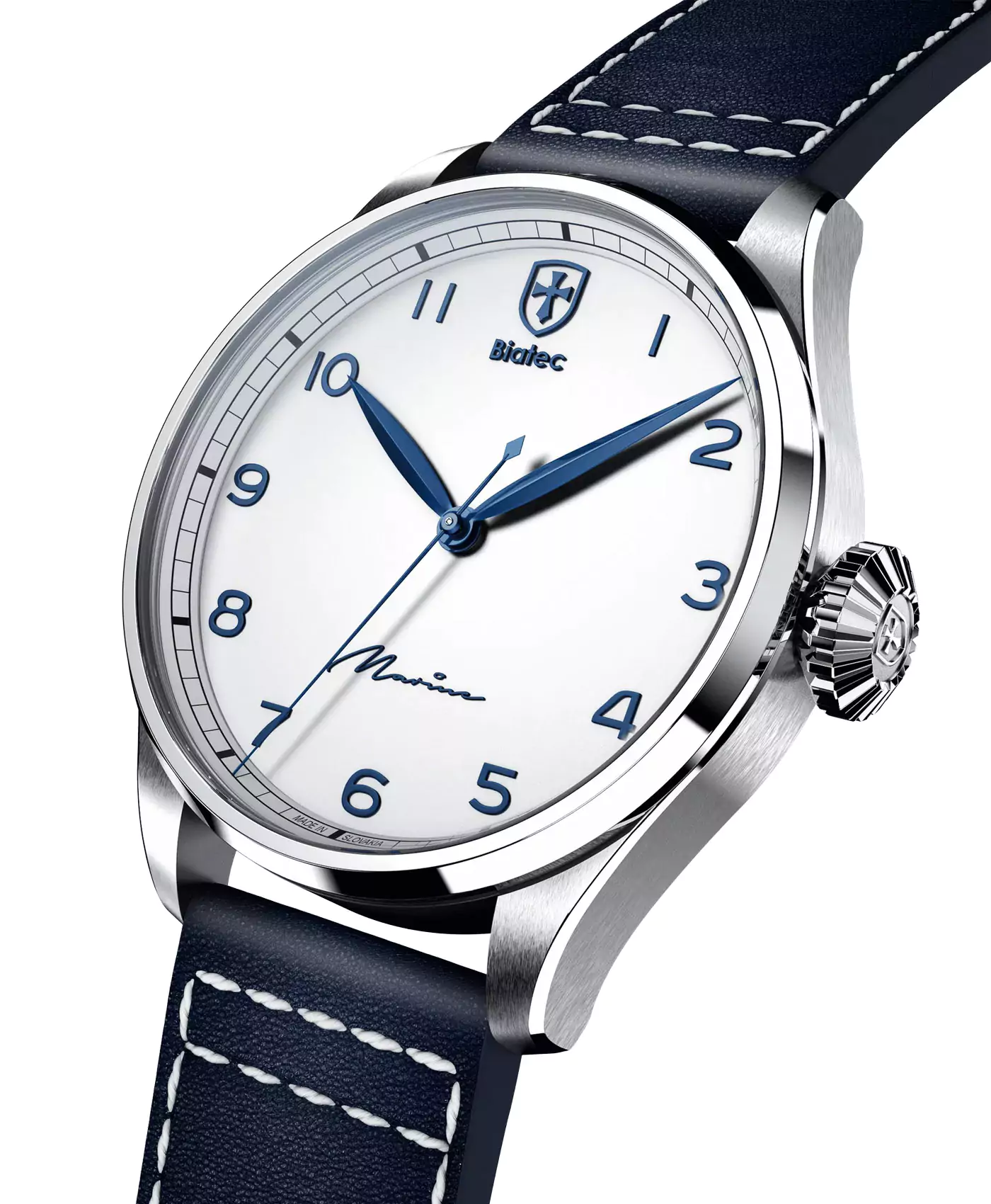 The Biatec Marine 03 N is a tribute to the marine chronometers. Its silvery-white sunray dial captures the shimmer of sunlight on water, while the custom wave rotor mirrors the untamed spirit of the sea.