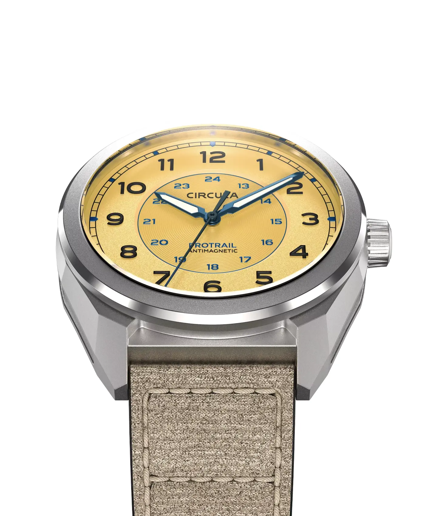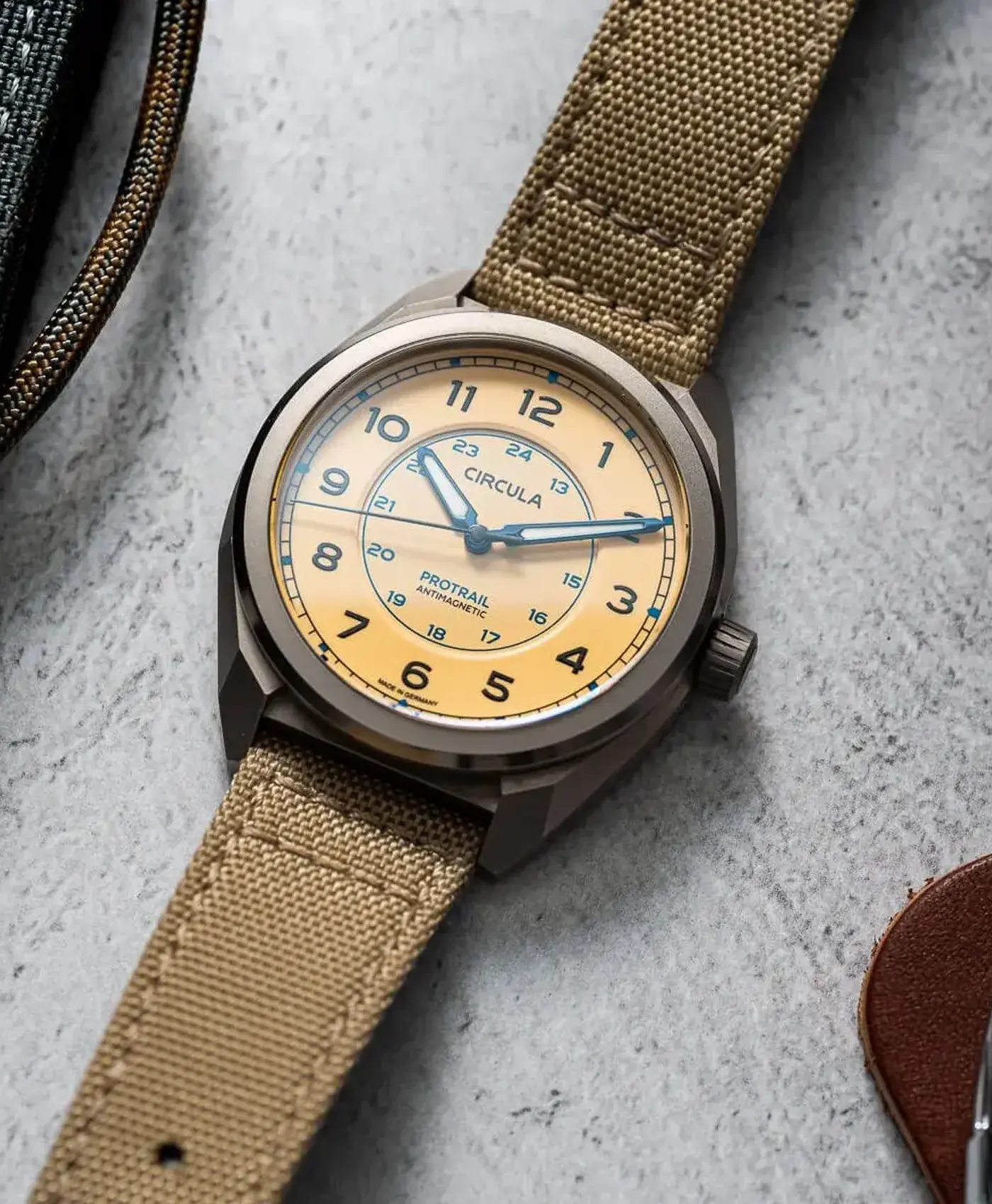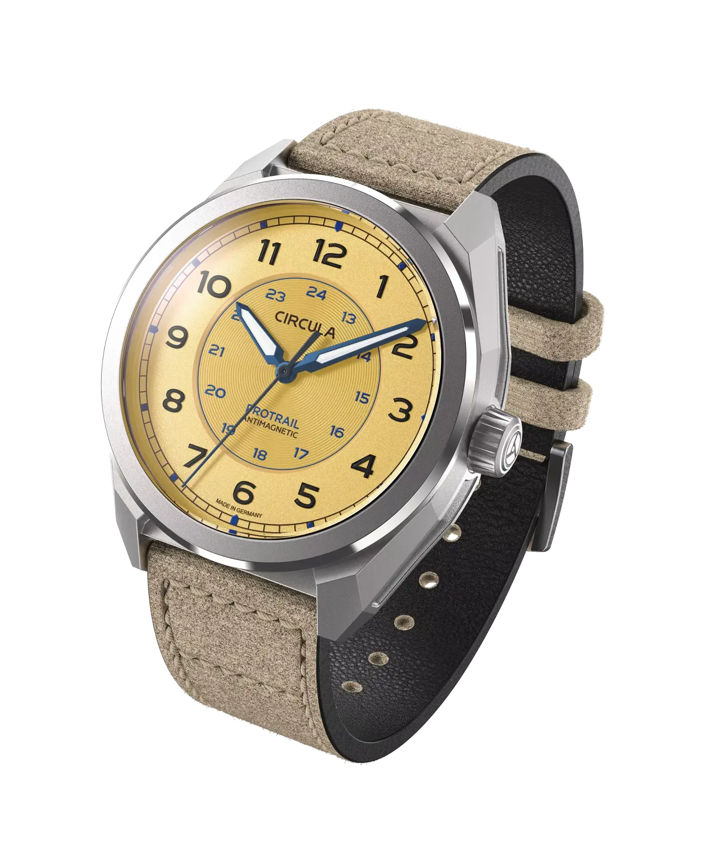 The Circula ProTrail is the Ultimate Field Companion. Built for adventure, the ProTrail Black embodies the essence of a true field watch: rugged, precise, and engineered for reliability. Its hand-sandblasted stainless-steel case, hardened to an impressive 1,200 Vickers, resists scratches and shields a Swiss automatic Sellita SW200-1 Elabore movement. With anti-magnetic protection up to 80,000 A/m, sapphire crystal, and a 15 ATM water resistance, it’s designed to perform in any environment. Developed with input from over 6,500 watch enthusiasts worldwide, the ProTrail combines German craftsmanship from Pforzheim with purposeful functionality and timeless design.