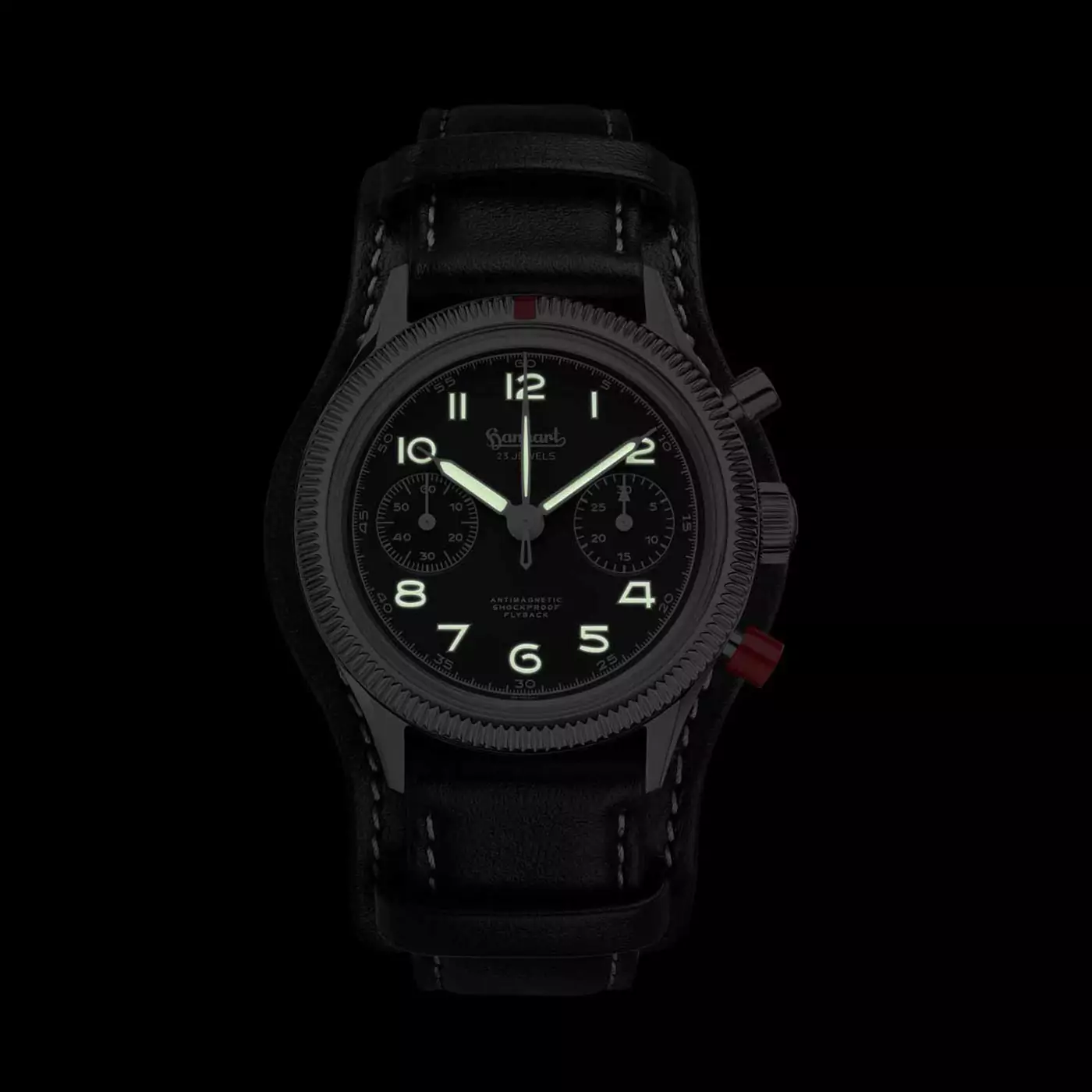 The Hanhart 417 ES is a modern reissue of a true icon: the first pilotโs chronograph ever issued to the German Bundeswehr in the 1950s. Built for adventure and everyday wear, this hand-wound mechanical chronograph blends vintage military design with modern Swiss-made precision. The coin-edge bezel, symmetrical pushers, and retro dial layout stay true to the original, while Super-LumiNovaยฎ ensures perfect legibility day or night.