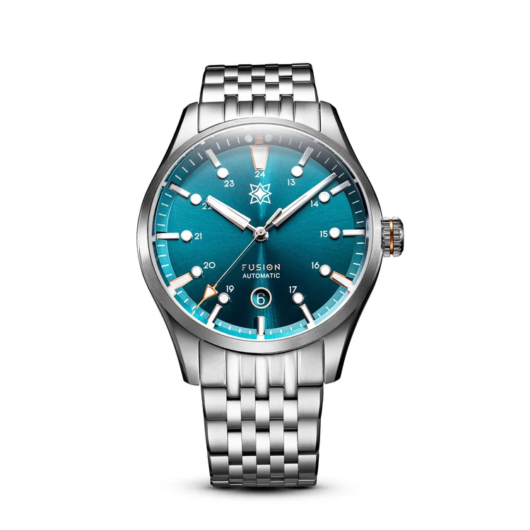Sleek, svelte lines combine with stylishly appealing dials and surface hardening for superior protection from the wear and tear of daily life. The Fusion draws together the ultra sleek case form and superlative bracelet of the Sattelberg Mk2 with the exhaustive details and playful colours of the Mandala, creating something new and distinct. With its fusion case back that artfully captures the merging of two circular forms – reflecting its design origins – the Fusion plays its own game and will impress with its incredible fit and finish, and our always beautiful dials and hands.